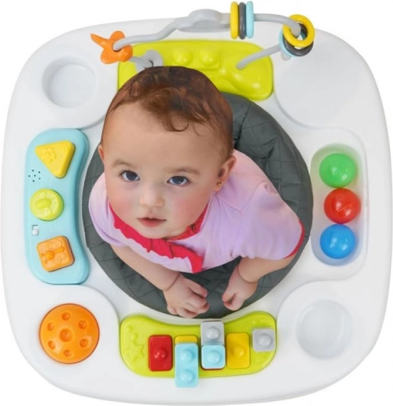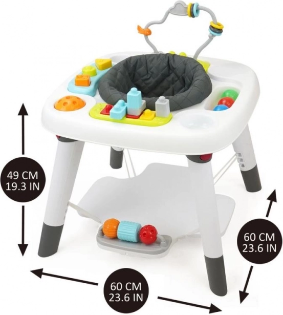 Masa de joacă interactivă pentru copii 3 în 1 este mai mult decât doar o jucărie. În prima etapă, copilul poate explora lumea din confortul unui scaun cu jucării ușor accesibile. A doua etapă aduce distracția învățării mersului și interacțiunii cu jucăriile interactive și colorate aranjate în jurul mesei. A treia și ultima etapă transformă masa într-o piesă de mobilier funcțională, care poate fi folosită pentru joacă, masă sau alte activități creative.