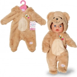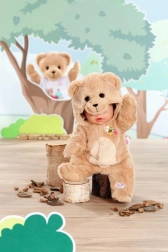 Îmbracă-ți păpușa în adorabila pijama ursuleț și descoperă o lume a imaginației. Salopeta din material plușat fin este confortabilă, plăcută la atingere și ideală pentru îmbrățișări și jocuri de schimbat hăinuțele. Gluga cu urechiușe și broderia drăguță oferă hăinuței un aspect irezistibil.