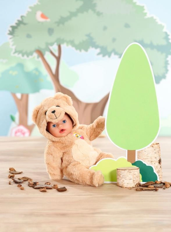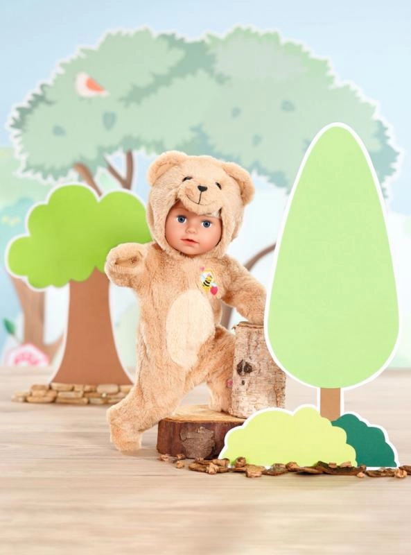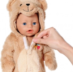 Salopeta drăgălașă tip ursuleț pentru păpușile BABY BORN 43 cm transformă păpușa ta într-un companion moale și pufos. Hăinuța din pluș foarte moale, cu glugă și urechiușe, este grozavă pentru joacă și îmbrățișări. Include și un umeraș pentru depozitare ușoară. Material foarte moale, glugă cu ursuleț și îmbrăcare ușoară cu fermoar – pe placul fiecărui copil. Păpușa nu este inclusă. Potrivită de la 3 ani.
