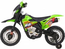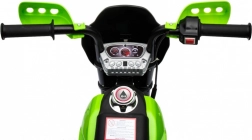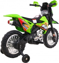 Plimbare distractivă și sigură pentru micii rideri: această motocicletă cross pentru copii, cu acumulator 6V și motor RS-390, oferă control ușor al accelerației în mâner, roți ajutătoare pentru stabilitate, lumini LED frontale și panou audio cu 4 melodii. Roțile cu bandă de rulare din cauciuc asigură aderență mai bună și o rulare mai silențioasă.