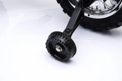 Motocicleta electrică pentru copii în stil cross este ideală pentru primele ture pe două roți. Controlul facil datorită accelerației în mâner și modului înainte ajută la construirea încrederii, în timp ce roțile ajutătoare detașabile mențin stabilitatea pe orice suprafață. Luminile LED frontale și panoul cu sunete și melodii asigură un plus de distracție și realism.