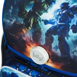 Ghiozdanul școlar BAAGL Ergo Roboti, ușor și ergonomic, pentru elevii din clasa I, oferă sistem dorsal reglabil, închidere magnetică Fidlock, material impermeabil și elemente reflectorizante pentru siguranță și confort în fiecare zi.