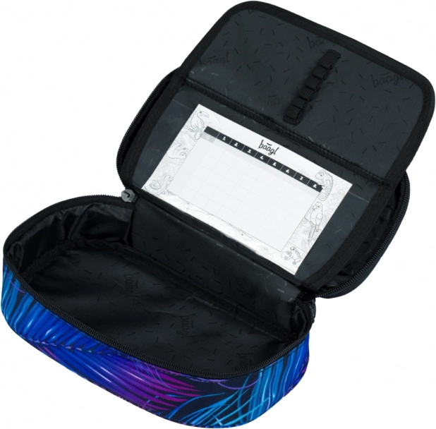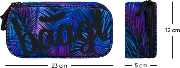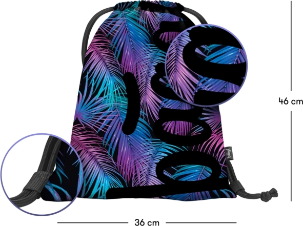 Descoperiți echiparea școlară completă într-un design unitar cu frunze de palmier. Rucsacul ergonomic cu organizator și compartiment pentru laptop de 15" oferă ordine și confort, penarul păstrează instrumentele de scris în regulă, iar săculețul este ideal pentru încălțăminte sau activități. Datorită construcției solide, spatelui căptușit și materialelor rezistente, setul este pregătit pentru rutina școlară zilnică.