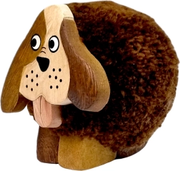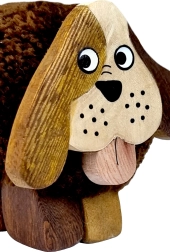 Înviorați-vă casa sau biroul cu această figurină de câine din tipuri unice de lemn: pao-brasil galben, tamarind deschis la culoare, cassia brună închisă, aniba roz și gmelina albă. Fiecare figurină este realizată și pictată manual, oferindu-i un aspect personal și original. Datorită materialului său natural, oferă calitate durabilă și eleganță.