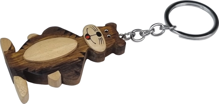 Brelocul din lemn Tigru este realizat manual din până la cinci tipuri de lemn natural, fiecare cu nuanțe naturale diferite. Brelocul conține:
