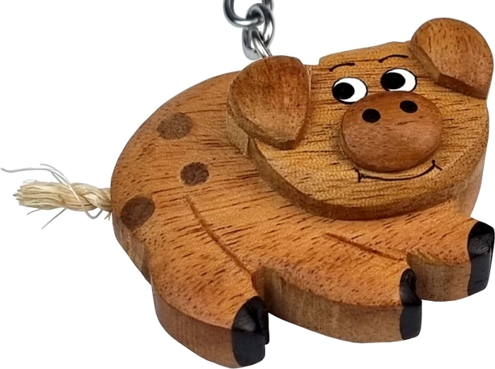 Vă prezentăm un breloc din lemn în formă de purceluș, care va deveni parte favorită a colecției dumneavoastră. Acest minunat accesoriu de chei este realizat manual din cinci tipuri diferite de lemn natural, asigurând un aspect unic și natural.