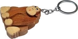 Descoperiți frumusețea naturală cu brelocul din lemn în formă de maimuță, realizat manual din până la cinci tipuri de lemn: pâine galbenă jackfruit, tamarind deschis la culoare, cassia maro închis, aniba roz și arbor alb gmelina. Pictat manual, doar lemnul are culoare naturală, nefiind vopsit.