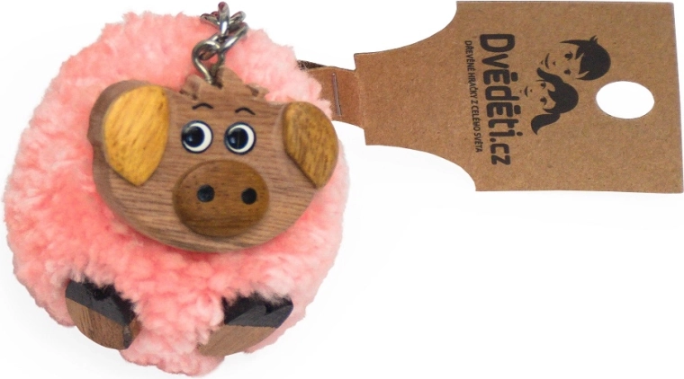 Acest breloc stilat în formă de purceluș este realizat din lemn natural ales cu grijă și finisat manual, astfel încât fiecare piesă este unică. Lemnul nu este colorat – se remarcă prin nuanțele și fibra sa naturale. Inelul metalic practic asigură prinderea sigură de chei, geantă sau rucsac, în timp ce pomponul din bumbac adaugă brelocului un aer jucăuș și șarm.