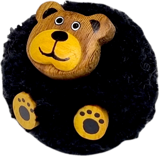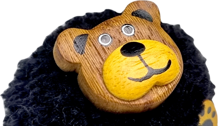 Corpul textil moale cu pompon și chipul de ursuleț din lemn îi încântă atât pe copii, cât și pe adulți. Excelent ca decorațiune și ca mic cadou.