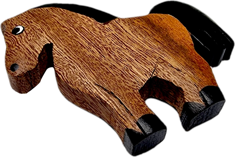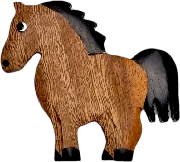 O magnetă stilată din lemn în formă de cal luminează orice frigider sau tablă magnetică. Este realizată manual din până la cinci tipuri de lemn natural, nevopsit – culoarea rezultă în mod natural. Fiecare piesă este unicat, finisată cu detalii pictate fin și pregătită să încânte ca element decorativ sau mic cadou pentru iubitorii naturii și ai animalelor.