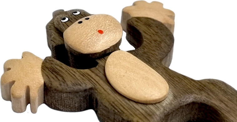Un magnet drăguț din lemn în formă de maimuță de la 2Kids Toys adaugă oricărui frigider sau panou magnetic un aer jucăuș. Este realizat manual din până la cinci tipuri de lemn, cu texturi și nuanțe naturale diferite, astfel încât fiecare piesă este unică. Materiale naturale, lucrat și pictat manual și magnet puternic îl transformă în cadoul ideal pentru iubitorii de animale și accesorii de design.