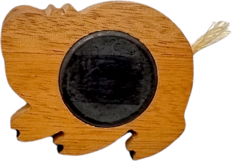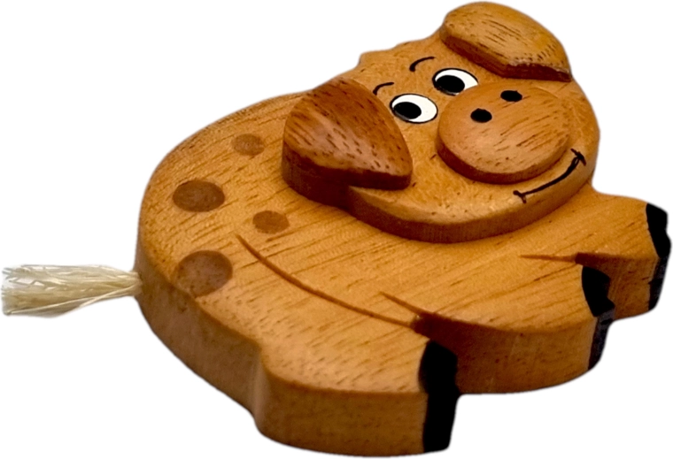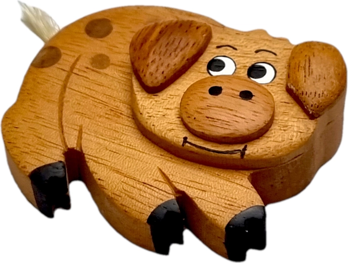 Această magneată din lemn de calitate, în formă de purceluș, este realizată cu atenție la detalii și meșteșug autentic. Combinația de esențe exotice în culori diverse evidențiază fibra naturală a materialului – fără vopsire integrală, doar cu pictare manuală a detaliilor pentru un aspect jucăuș.