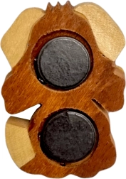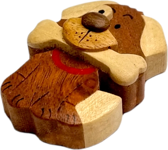 Această magnetă mare din lemn, cu motiv de câine cu os, îmbină măiestria autentică și materialele naturale. Fiecare piesă este atent compusă din esențe de lemn în culori variate și pictată doar manual – fără vopsire integrală, pentru a evidenția fibra naturală a lemnului.