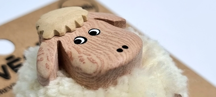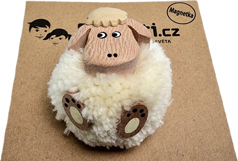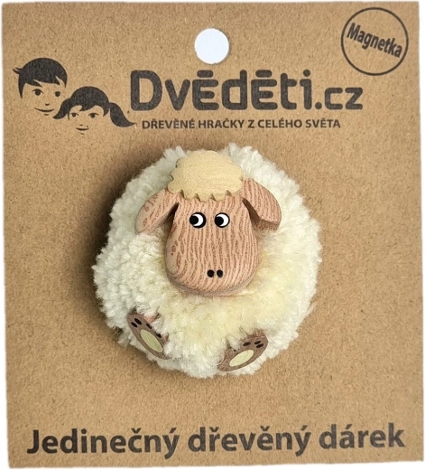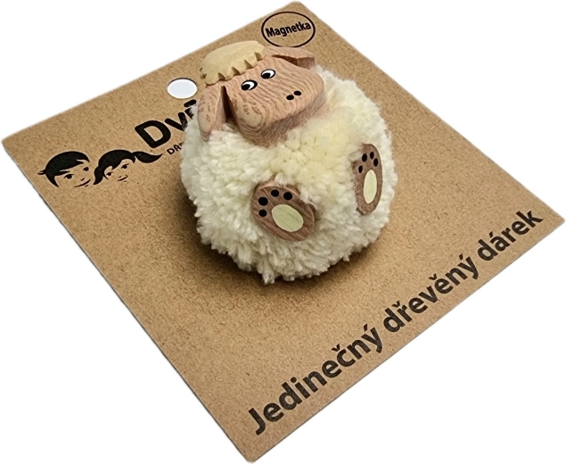 O drăgălașă magnetă din lemn în forma unei oițe, cu pompon pufos, care va însenina orice frigider sau tablă magnetică. Este realizată manual din până la cinci tipuri de lemn natural și doar ușor pictată, astfel încât își păstrează aspectul autentic. Un mic cadou grozav și un element decorativ pentru iubitorii de natură și animale.