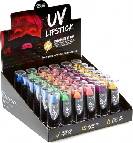 Descoperă magia rujului UV, care va transforma buzele tale într-o operă de artă vizibilă doar sub lumina UV. Disponibil în culori strălucitoare ca albastru, verde, portocaliu, roz, mov și galben. Acest produs cosmetic este testat dermatologic și blând cu pielea.