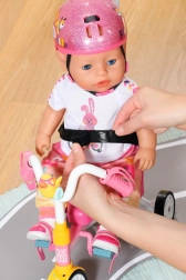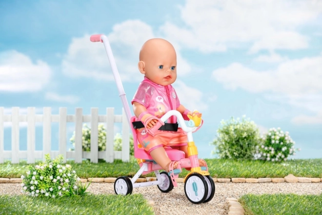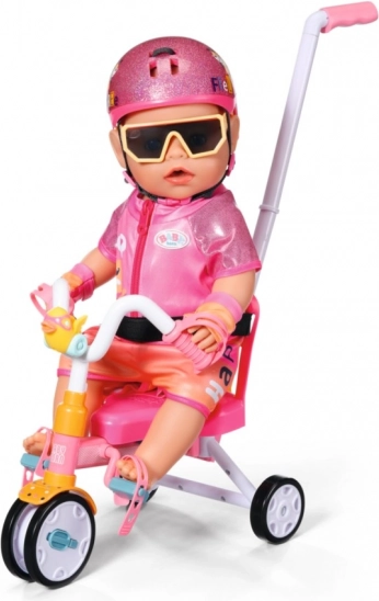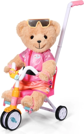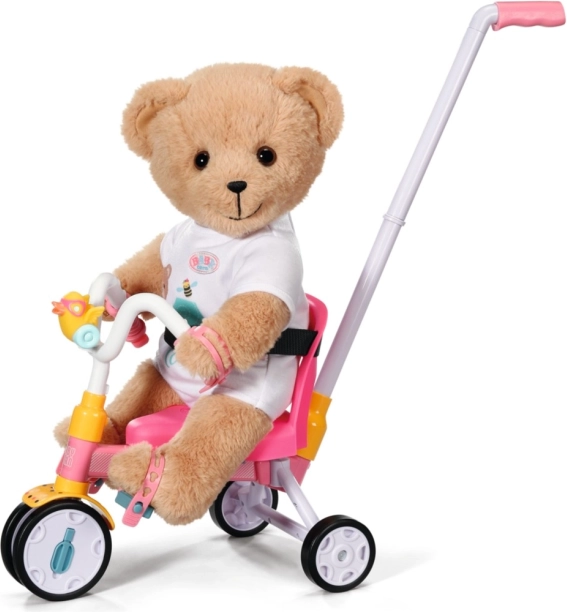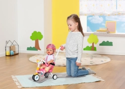 Distracție și siguranță excelentă pentru copilul dumneavoastră cu trotineta cu trei roți BABY born. Această trotinetă oferă o plimbare distractivă și sigură cu o tijă de direcție detașabilă și centuri de siguranță.