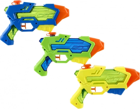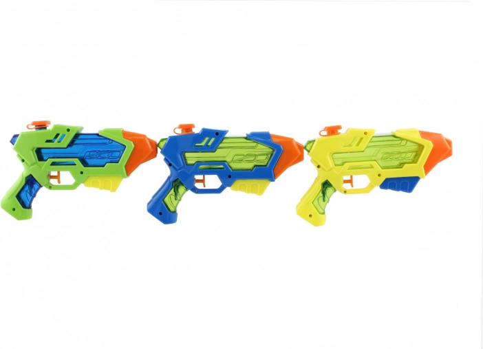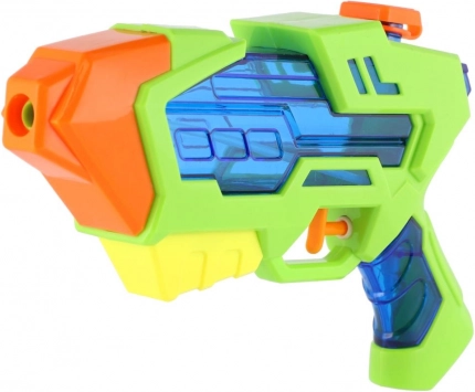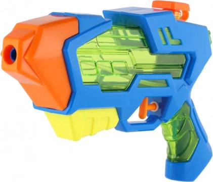 Pistolă compactă cu apă din plastic, lungime 22 cm, pentru bătălii acvatice de vară. Datorită construcției ușoare și mânerului ergonomic, este ideală pentru copii de la 3 ani. Umplere ușoară prin capacul superior și rezervor vizibil pentru control rapid. Jucărie grozavă pentru grădină, plajă și piscină – aduce răcorire, distracție și joacă în apă în siguranță în zilele toride.