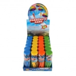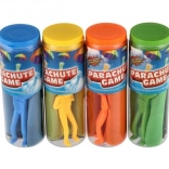 Un tub cilindric transparent protejează jucăria și facilitează transportul. Ia parașutistul oriunde – la locul de joacă, la bunici sau în vacanță.