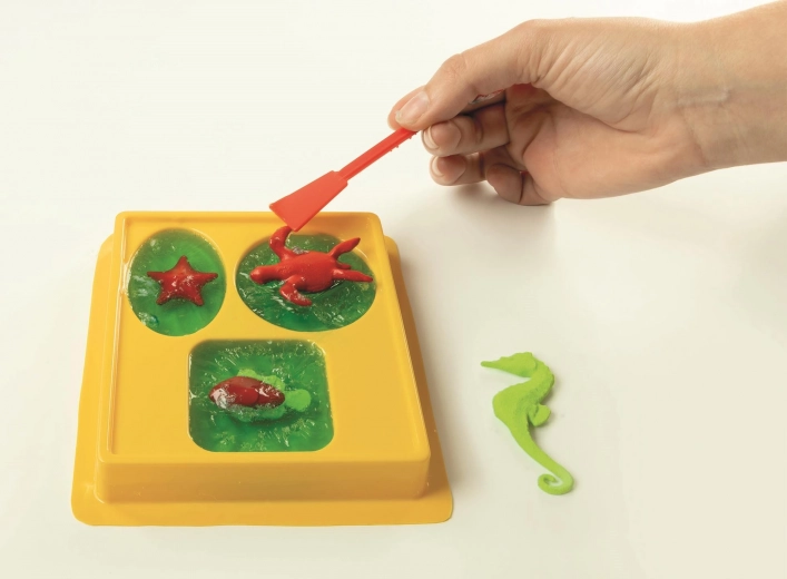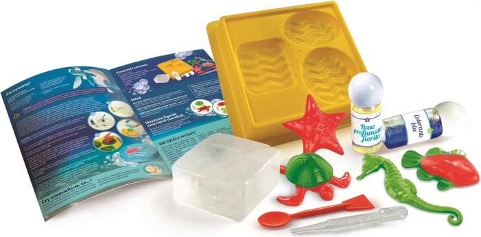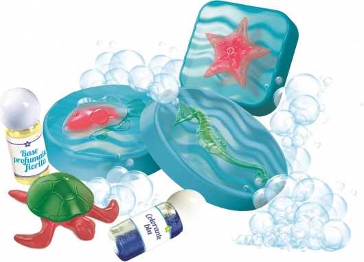 Set pentru realizarea de săpunuri colorate și parfumate cu tematică marinărească. Animăluțele amuzante incluse în set vor îmbogăți și vor da un plus de varietate creațiilor tale din săpun.