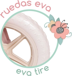 Echiparea practică include roți EVA fără întreținere (nu pot fi înțepate), șea anatomică reglabilă, mânere cauciucate anti-răsucire, apărători de noroi și gentuță frontală cu arici pentru mărunțișuri. Bicicleta de echilibru este realizată din materiale de calitate, cu finisare precisă, și corespunde nevoilor începătorilor.