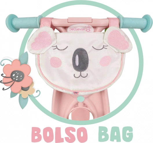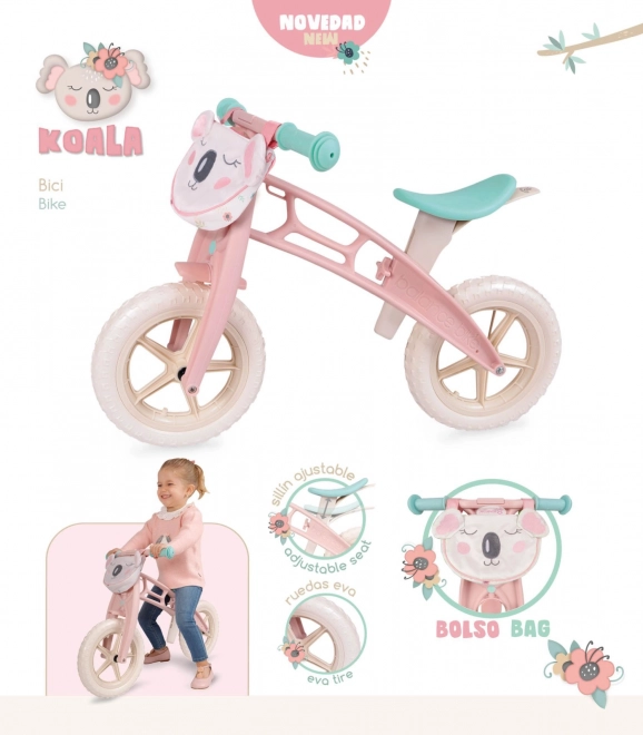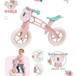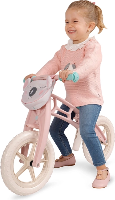 Bicicletă de echilibru stilată pentru fete, în design roz-alb cu model floral delicat și un ursuleț koala adormit, care cucerește din prima privire. Copiii învață ușor să își mențină stabilitatea și trec în siguranță la bicicleta clasică. Greutatea redusă de 2 kg ușurează manevrarea și transportul.