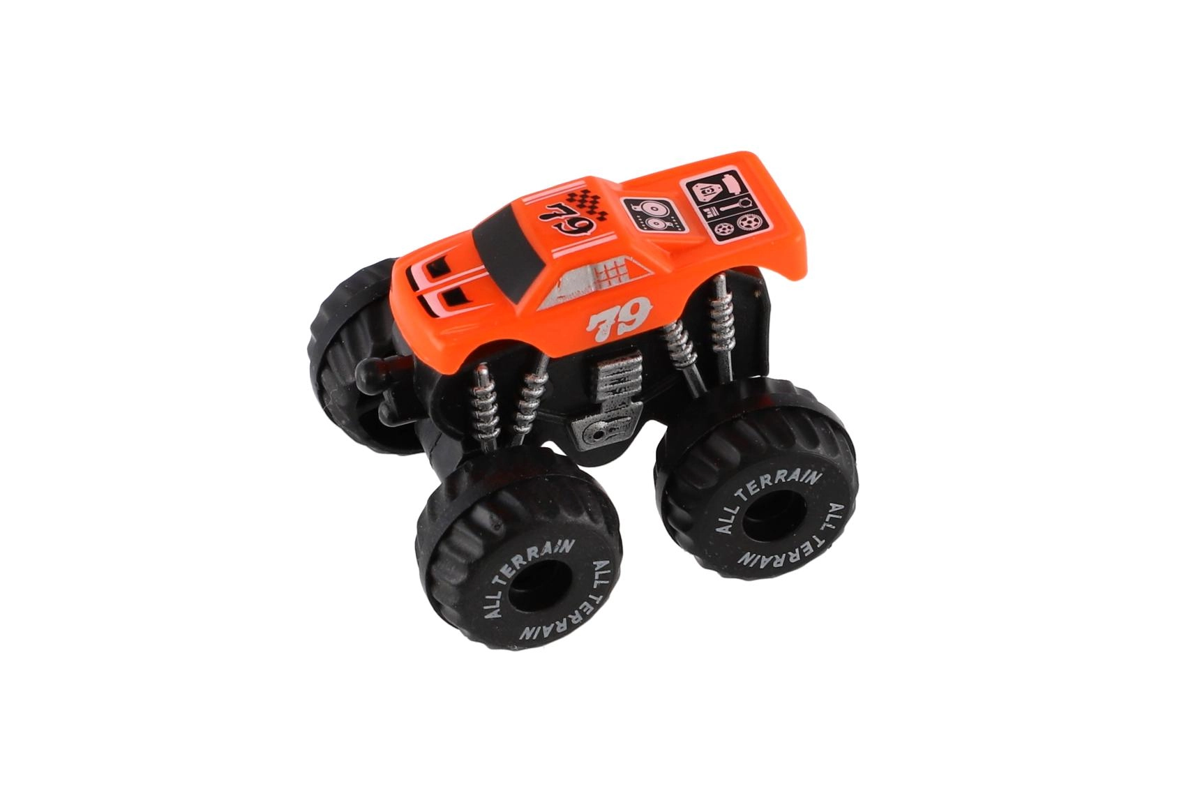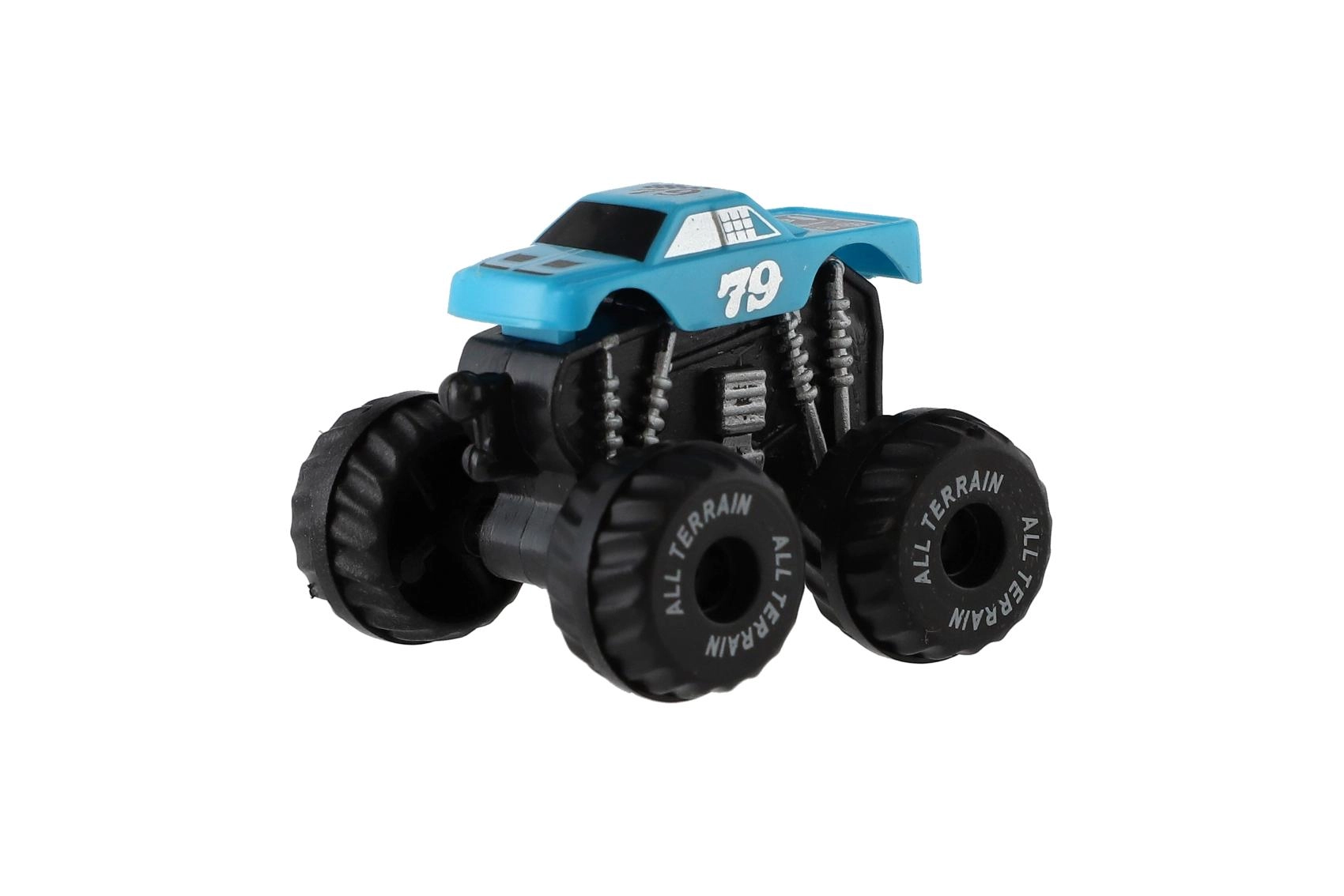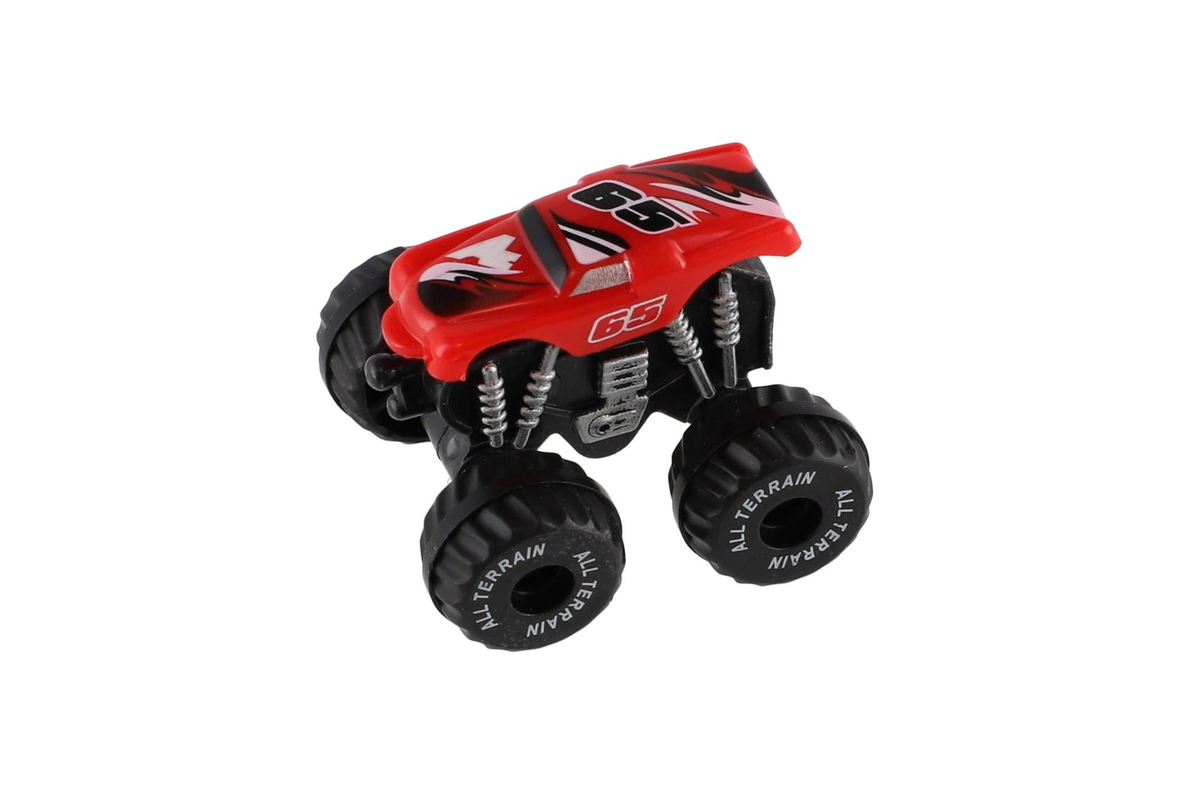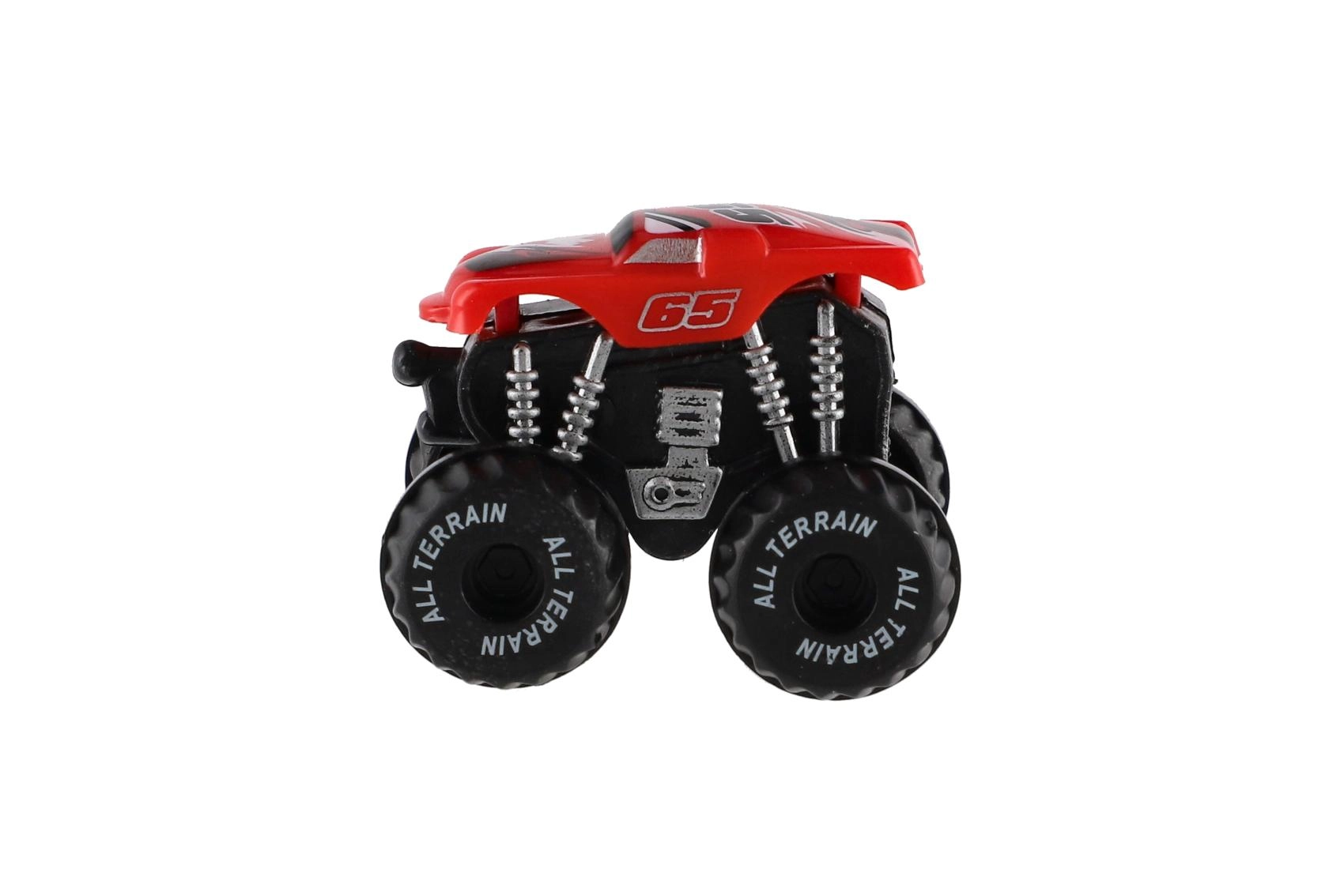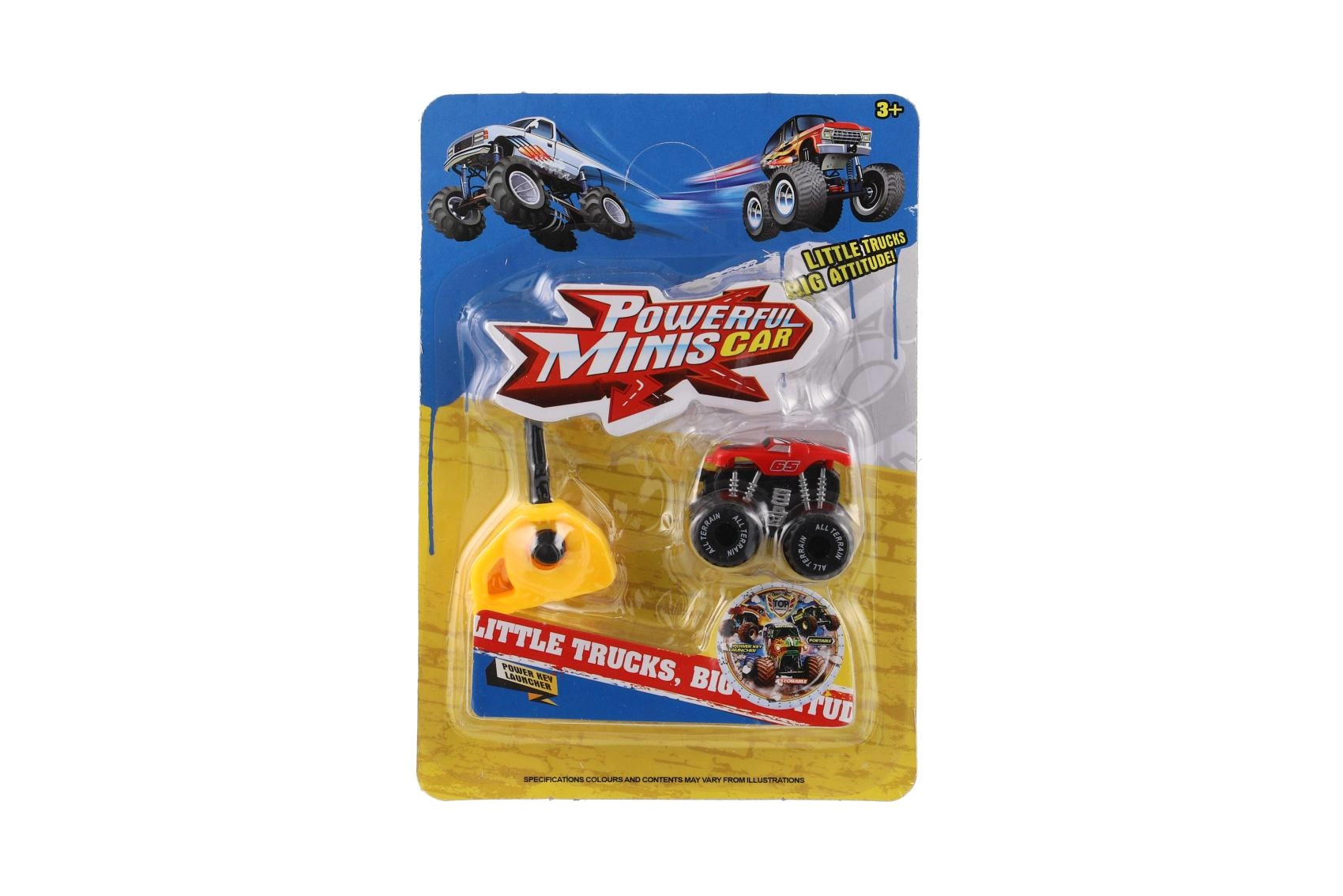 Mini camion monstru amuzant, cu cheie de lansare pentru pornire rapidă, îi va încânta pe toți micii piloți. Doar introduceți cheia în partea din spate, apăsați butonul și mașinuța țâșnește înainte. Datorită roților mari all‑terrain se descurcă pe diverse suprafețe, iar construcția compactă și plasticul rezistent sunt ideale atât în călătorii, cât și acasă. Lungimea mașinuței: 4 cm. Potrivită de la 3 ani.