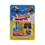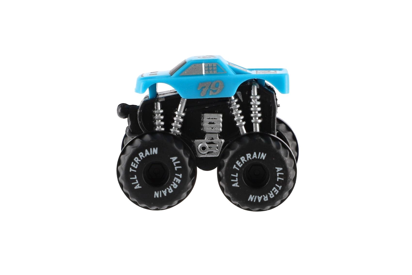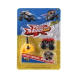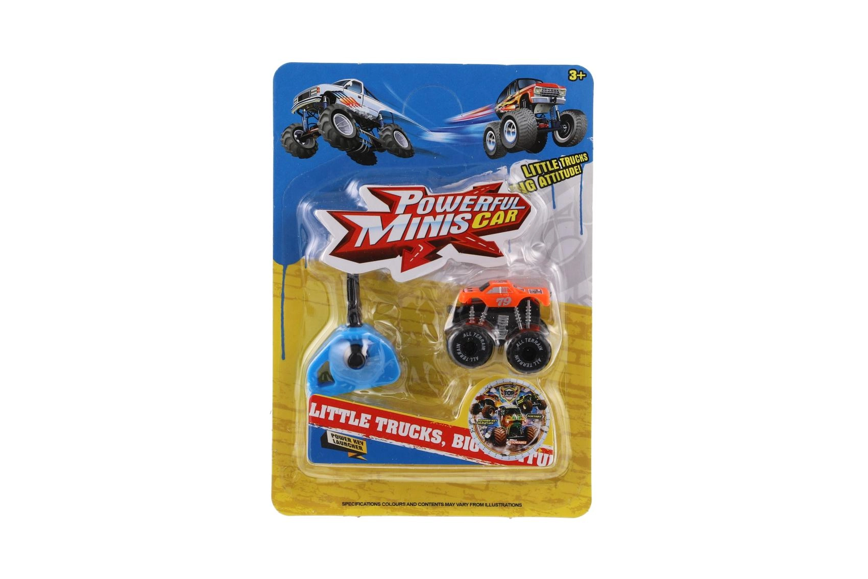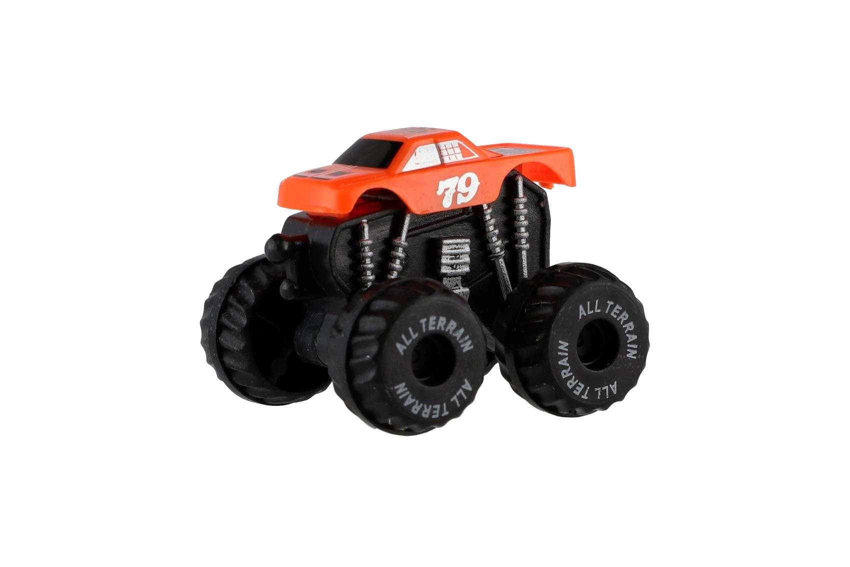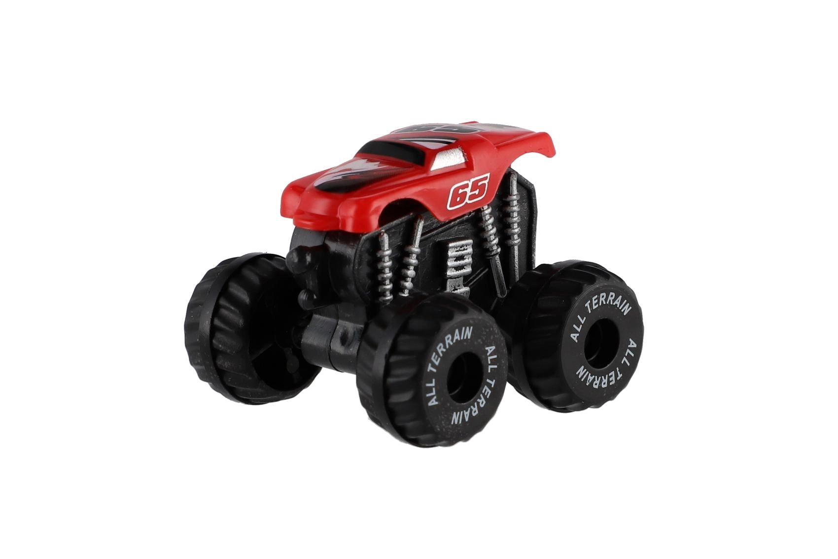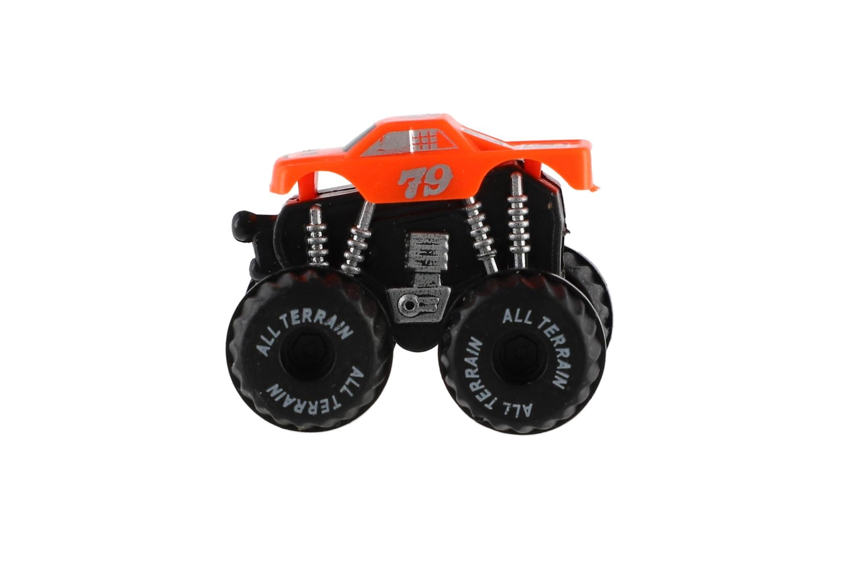 Mini camion monstru amuzant, cu cheie de lansare pentru pornire rapidă, îi va încânta pe toți micii piloți. Doar introduceți cheia în partea din spate, apăsați butonul și mașinuța țâșnește înainte. Datorită roților mari all‑terrain se descurcă pe diverse suprafețe, iar construcția compactă și plasticul rezistent sunt ideale atât în călătorii, cât și acasă. Lungimea mașinuței: 4 cm. Potrivită de la 3 ani.