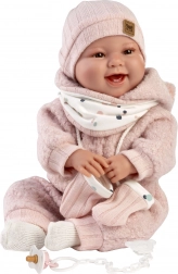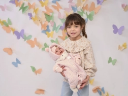 Membrele sunt prinse pe articulații, astfel încât păpușa poate și sta în șezut. O poți îmbrăca ușor în hăinuțele originale LLORENS pentru 43–45 cm.