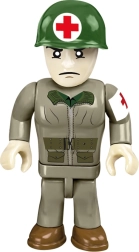 Include o figurină detaliată de medic al Armatei SUA cu cască verde și cruce roșie – gata să intervină pe câmpul de luptă și să salveze răniți.