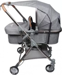 Poliesterul impermeabil asigură umbrire eficientă și protejează pielea sensibilă a copilului de soare și averse scurte, pentru siguranță și confort.