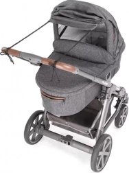 Elasticul peste capotină și șnururile cu opritor permit fixarea ușoară pe majoritatea cărucioarelor și ajustarea la condițiile curente.