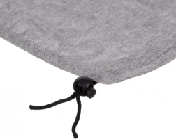 Instalarea este rapidă și intuitivă – treci elasticul peste capotină și fixezi cu șnururile cu opritor de cadrul căruciorului. În pachet găsești un etui compact cu închidere cu arici, care nu ocupă loc nici în coș, nici în geanta pentru schimbat.