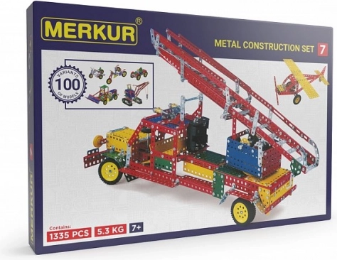 MERKUR 7 este un set clasic robust de construcție metalică, care oferă un ansamblu universal de piese completat de componente speciale pentru a construi un mare camion de pompieri, macarale mari și multe alte modele funcționale. Datorită cărții de instrucțiuni clare, veți construi pas cu pas zeci de structuri atractive.