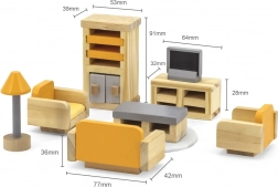 Include canapea, fotolii, lampă, masă TV și altele, toate gata de utilizare imediată.