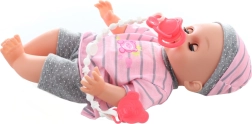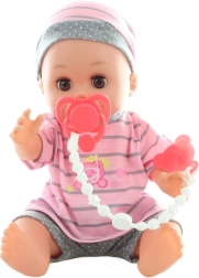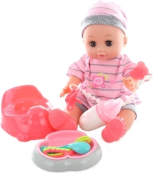 Pachetul conține păpușa cu accesorii pentru îngrijire – oliță, botoșei, sticluță, farfurioară și altele. Start ideal în lumea jocurilor de rol de-a părinții.