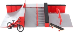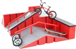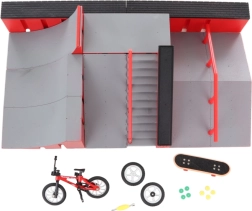 Intrați în lumea skatepark-ului miniaturizat, unde puteți efectua diverse trucuri cu accesorii realiste precum skateboard-ul miniatural și bicicleta BMX. Acest set oferă: