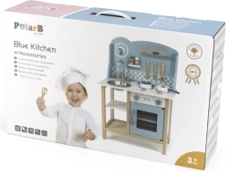Elegantă bucătărie de jucărie VIGA PolarB, în culoare albastră, aduce micilor bucătari distracție realistă pentru ore în șir. Include chiuvetă, cuptor, plită și hotă, accesorii bogate și 4 butoane rotative cu clic caracteristic. Susține creativitatea, imaginația și jocul social începând de la 3 ani.