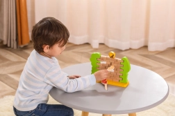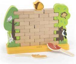 Copiii exersează precizia mișcărilor și coordonarea atunci când construiesc și scot cu grijă „cărămizile” din lemn. Jocul susține în mod natural concentrarea și lucrul calm cu mâinile.