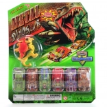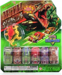 - 6 mașinuțe stilate cu motiv de dinozauri – fiecare cu lungimea de cca 6 cm.