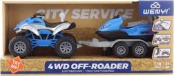 Acest ATV detaliat, cu remorcă și scuter, aduce copiilor multă acțiune și fantezie. Datorită efectelor luminoase și sonore, jocul devine și mai realist și captivant. Setul include o remorcă pentru transportul scuterului, astfel încât copiii își pot crea propriile povești și aventuri.
