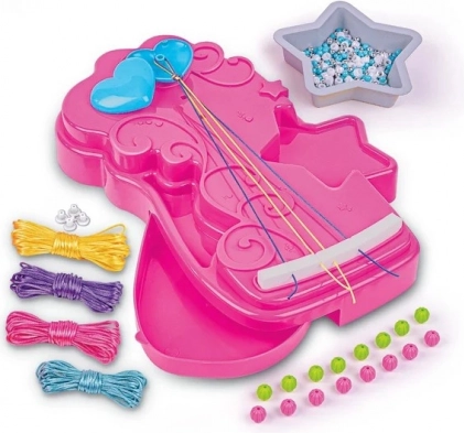 Setul include șnururi vii colorate, ace și o gamă largă de mărgele într-un organizator în formă de stea pentru combinații nesfârșite de modele.