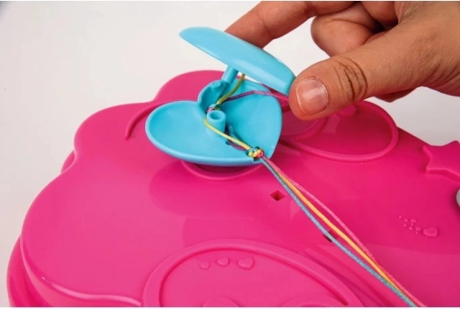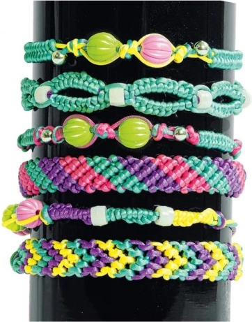Acest set jucăuș pentru împletirea brățărilor aduce tot ce ai nevoie pentru a realiza brățări colorate ale prieteniei – de la șnururi și mărgele până la un cadru practic care menține firele la loc în timpul lucrului. Datorită ilustrațiilor clare, copiii învață rapid nodurile și modelele de bază și își creează pas cu pas accesorii stilate.