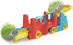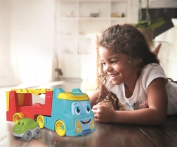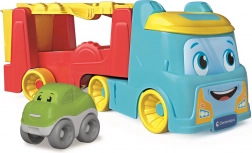 Acest transportor auto colorat CLEMENTONI îi va încânta pe toți micii șoferi. În modul camion, copiii transportă mașinuța și descoperă lumea vehiculelor reale, iar în modul pistă, vehiculul pornește pe traseu, se răstoarnă și face vesele tumbe – bucuria jocului și a învățării într-un singur produs.