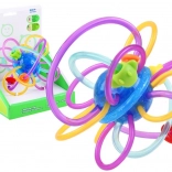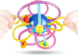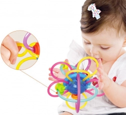 În timpul jocului, copilul exersează motricitatea fină și grosieră – prindere, scuturare, rostogolire și aruncare. Culorile contrastante, dar liniștitoare, dezvoltă vederea și ajută la diferențierea formelor, culorilor și texturilor. Jucăria de dentiție se spală ușor cu apă caldă, astfel încât întreținerea este rapidă și igienică.