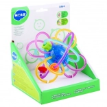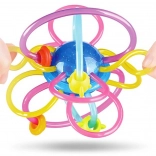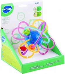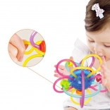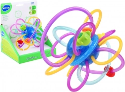 Această „minge” creativă cu bucle împletite și mărgele este concepută pentru a trezi natural simțurile copilului. Buclele elastice și flexibile se țin plăcut chiar și de cele mai micuțe mânuțe, în timp ce suprafața netedă și moale masează delicat gingiile. Mărgelele glisante și zornăitul fin susțin percepția auditivă și concentrarea.