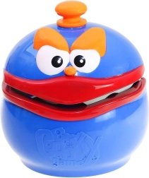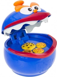 Așază „Ciasteczkowy Potwór” albastru în mijlocul mesei, umple-i gura cu biscuiți și învârte indicatorul. Săgeata îți spune ce biscuite să scoți – dar foarte atent! O singură mișcare greșită și gura se închide. Datorită dinților moi din spumă, jocul este sigur și potrivit chiar și pentru jucători mai mici.