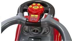 Barele de protecție din jurul șezutului și suporturile rabatabile pentru picioare oferă stabilitate și confort în timpul plimbărilor mai lungi. Volanul interactiv cu butoane muzicale și sonore susține percepția și gândirea analitică, în timp ce piesele detașabile treptat (bara de protecție, tija de ghidare) permit adaptarea trotinetei la vârsta și abilitățile copilului.