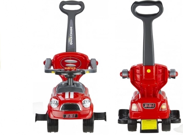 Trotineta fără pedale Coupe roșie aduce copiilor bucuria mișcării, iar părinților liniște datorită elementelor de siguranță bine gândite. Copilul poate conduce singur cu ajutorul volanului sau puteți prelua controlul cu ajutorul mânerului practic de ghidare. Construcția ușoară din plastic facilitează manevrarea și asigură că micul șofer nu obosește prea repede.