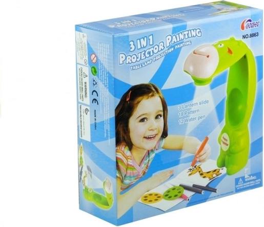 Acest proiector pentru copii în formă de girafă proiectează imagini pe hârtie sau pe perete, astfel încât micii artiști să poată învăța ușor să deseneze pas cu pas. Controlul este simplu și intuitiv – doar introduceți discul, alegeți motivul și apăsați butonul proiectorului. Datorită unghiului reglabil de proiecție, este potrivit atât pentru masă, cât și pentru perete.