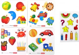 Pachetul conține tot ce este necesar pentru ore infinite de joacă și învățare: tablă magnetică, litere mari și mici magnetice, cifre și semne matematice magnetice, marker uscat cu burete, burete, cartonașe colorate cu imagini, sertare și rafturi pentru accesorii.